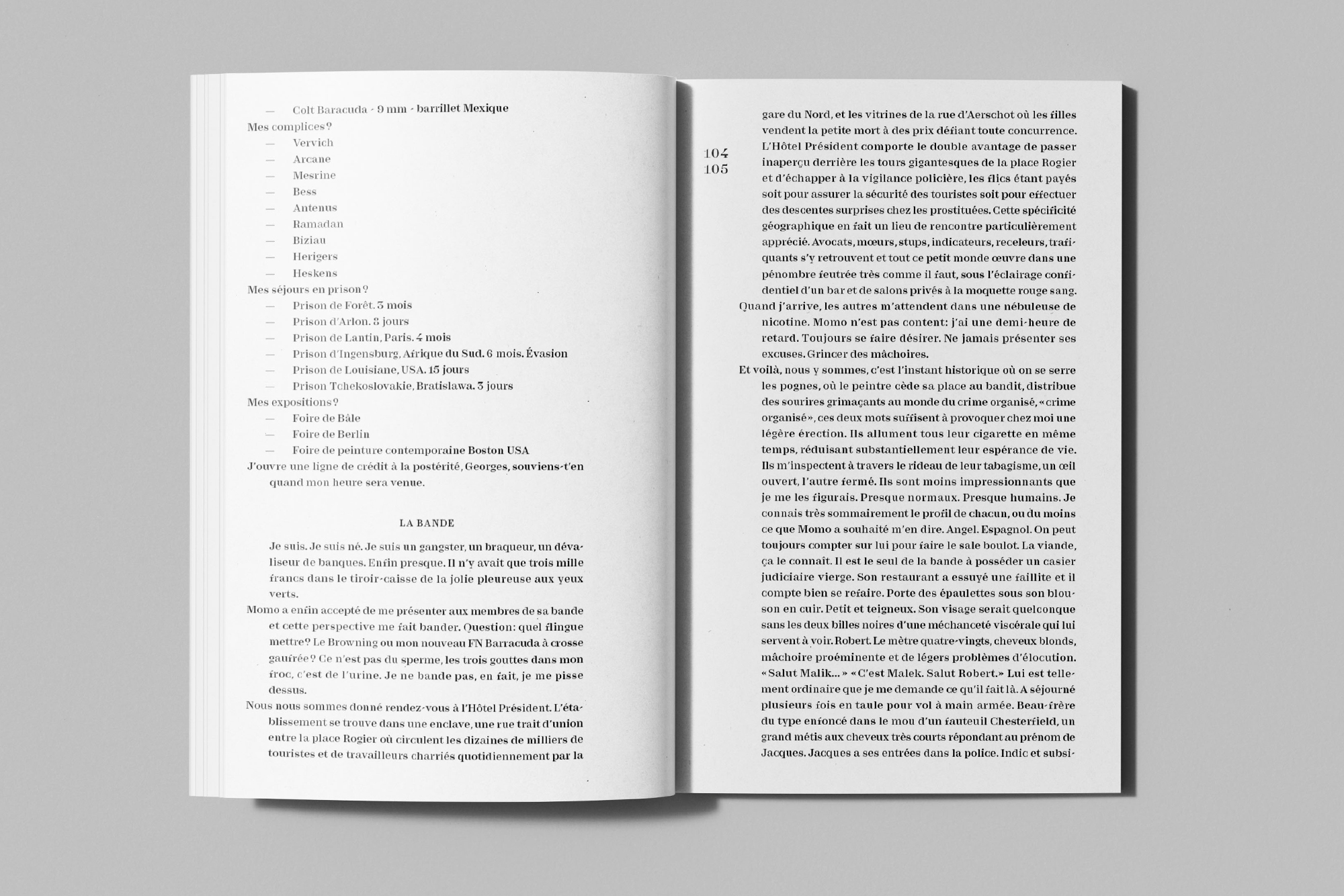 He also wrote Froncer les sourcils(.pdf), a critical essay about the economy of contemporary publishing practices, and Les clôtures du paradis, a walk from enclosed gardens to illuminated pages.